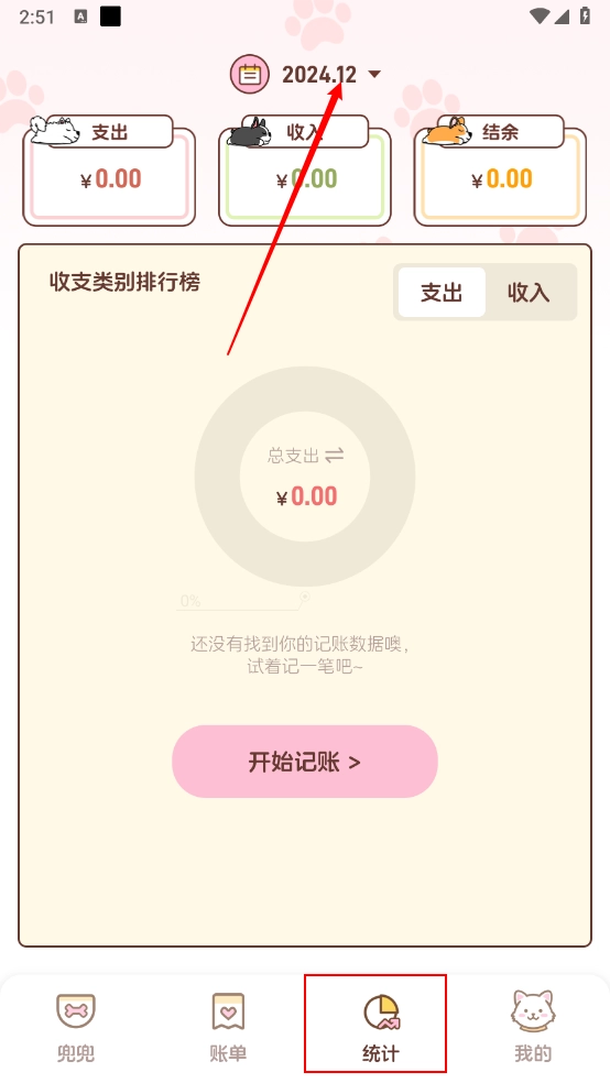 在“统计”区域,能够查阅每个月的收入、支出等各类数据。