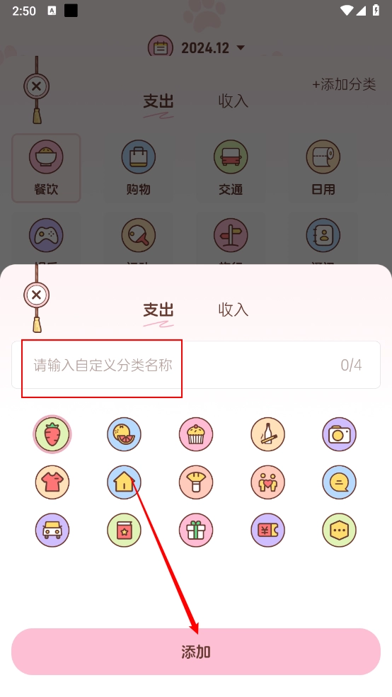 如图所示,你可以依据自身的实际需要,对想要记录账务的分类进行个性化设置,完成后点击“添加”按钮就可以了。