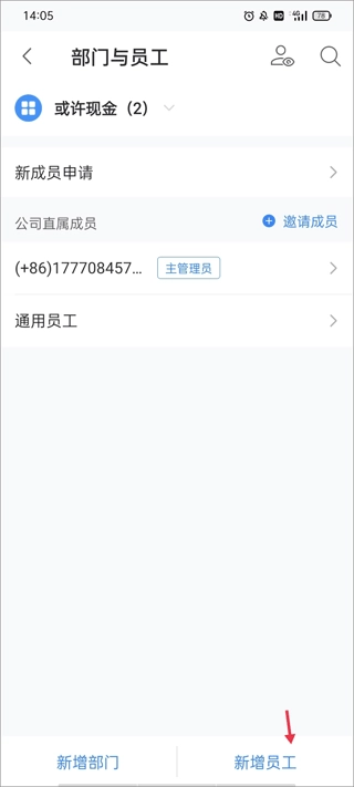 从首页进入设置页面后,找到并点击“部门与员工”相关选项,接着在页面右下角选择“添加新员工”按钮进行操作。