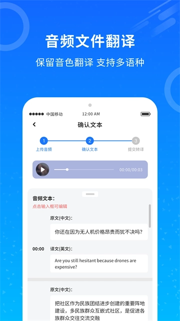 只需一键操作,就能把会议录音和外语播客转换成译文音频。借助AI技术,不仅能精准保留说话人的独特音色,译出的英文音频还能达到真人录制般的自然效果,是学习与商务场景中实用的得力帮手。