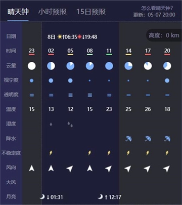 【气象与环境监测】:提供15天气象预报、极光预测、空气质量指数查询及光污染地图服务,助力您在良好环境下进行观星活动。