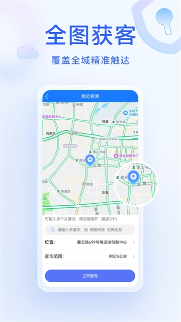 借助地图工具拓展客源:使用者能够检索地图覆盖范围内的各类客户资料,进而精准定位并获取不同地域的潜在目标客户群体。