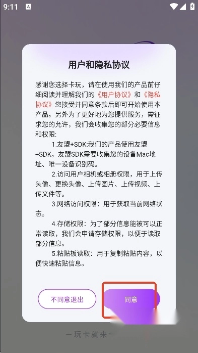打开,用户们先点击“同意”,同意软件协议政策