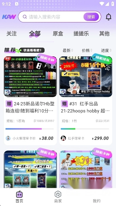 球星卡收藏平台:网罗各类热门系列,像NBA HOOPS这样的经典款都有收录,从随机卡到不同球队主题卡牌一应俱全,全方位满足藏家的多元收藏偏好;同时清晰呈现每件卡牌商品的具体信息,比如定价、拼团完成情况、附赠福利等,让用户能充分掌握交易相关的细节内容。