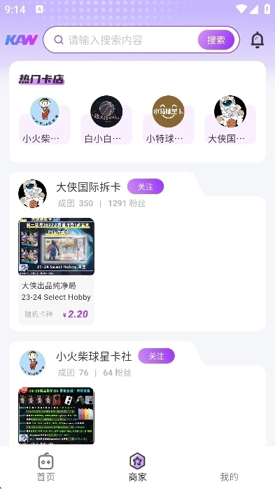 商家与交易相关内容:涵盖热门卡店清单,像小火柴球星卡社、小特球星卡、大侠国际拆卡等均在其中,会呈现商家的成团数量、粉丝规模等信息,助力用户挑选可靠商家;还会给出交易模式的介绍,支持一口价、议价、竞拍等多种交易形式,并且包含拼团玩法的具体规则。