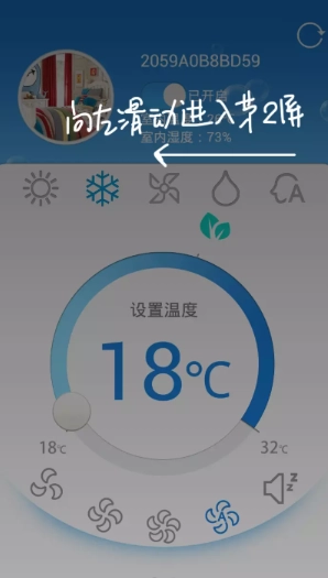 在这里既能查看当前室内温度,还能通过左右滑动来调节温度。
