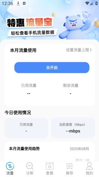 用户可在应用首页便捷查询个人手机流量的具体使用记录。