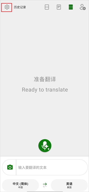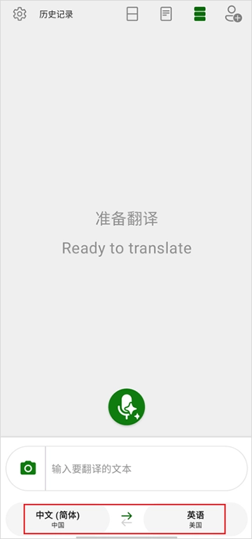 启动应用后,在主界面底部找到语言选项,点击即可更改翻译所使用的语言对(首次进入时系统通常会默认设置为中文简体与英语的组合)。