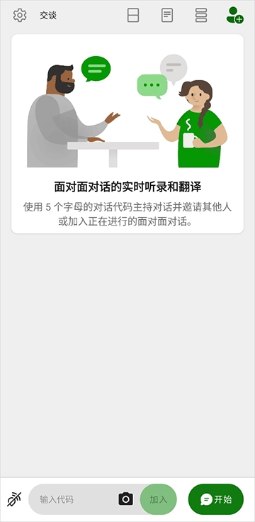 点击界面右上角的图标,就能开启与他人面对面的实时语音转写和翻译功能。