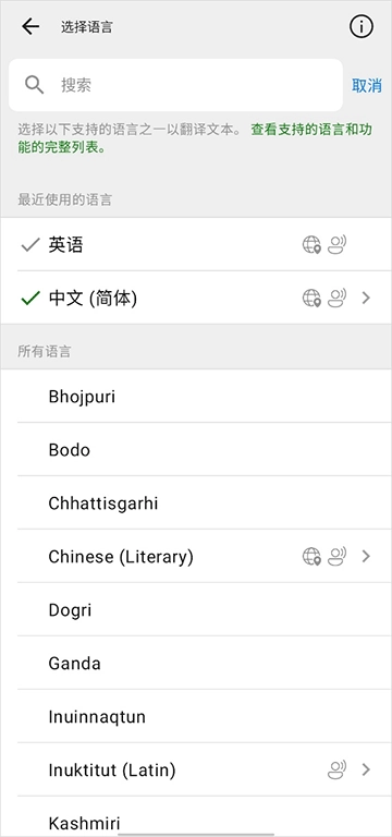 • 将文本翻译成60余种语言,可在线或离线使用。