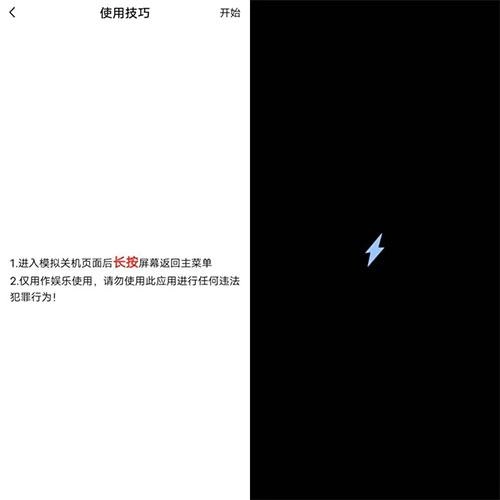 4、这个功能非常简单,就是点击开始即可模拟关机页面,长按屏幕回到主菜单。