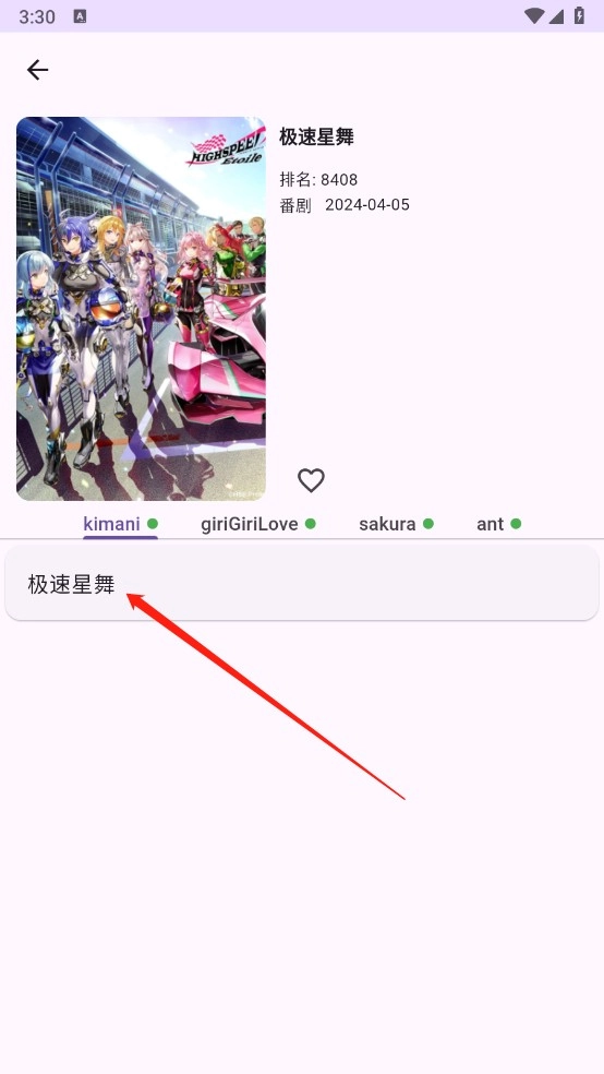 在挑选完心仪的动漫作品后点击进入,就像我选择的《极速星舞》那样。