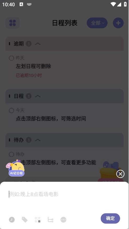 在弹出的输入框里填写需要记录的日程内容,内容能够按照需求自由编辑。