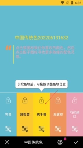 从素材库里挑选心仪的颜色,点击添加到色卡,搭配出独属于你的配色方案,完成后就能保存色卡,方便随时查看和使用。