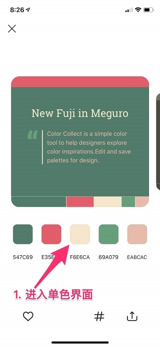 在灵感页面中,挑选你想要查看混合色的目标颜色。
