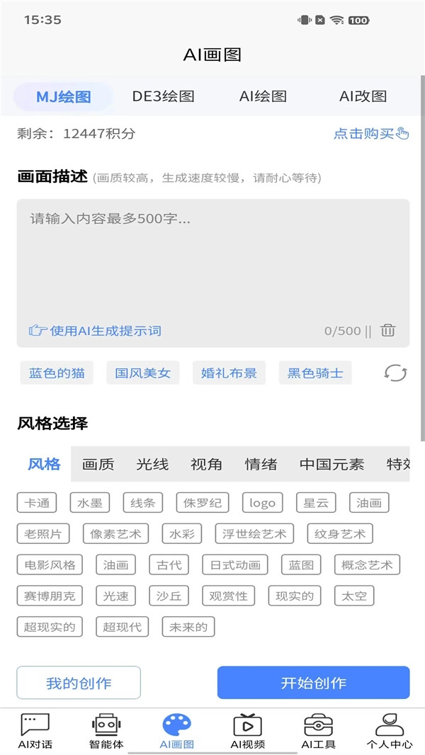 这款智能绘图工具搭载先进AI技术,能生成质感细腻、细节逼真的图像内容,提供数十种风格化创作选项,同时具备图像优化、场景扩展、瑕疵修复以及以图生图等多样化功能。