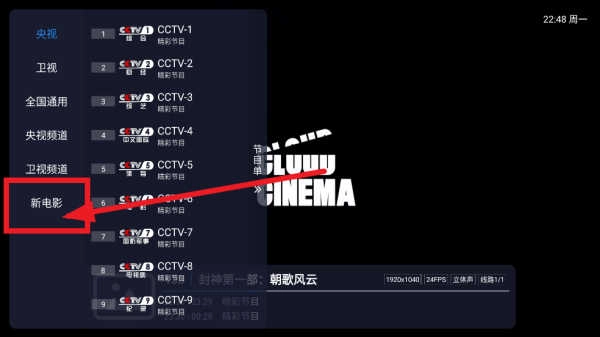安装完成后,回到电视主界面,找到并点击小哥全网通的图标来启动软件。为了确认安装是否成功,建议先进入“电影分区”测试能否正常播放视频。