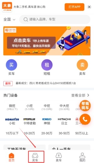 打开大象二手机,在底部菜单中找到“买车”选项。