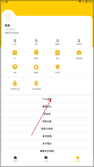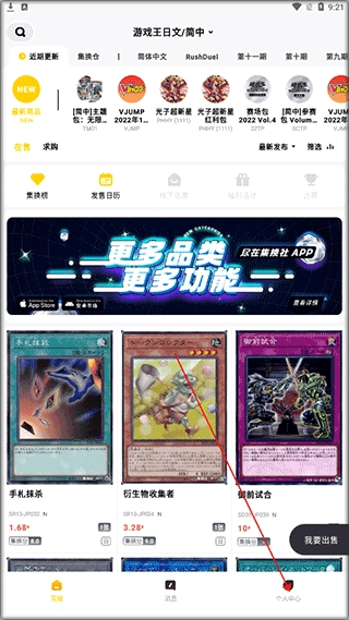 在本页完成集换社的安装操作后,打开该应用进入主界面,随后点击个人中心选项。