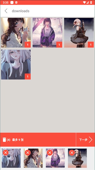 选择至多9张图片进行拼图。