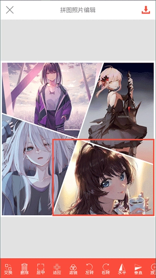 单独选中某一张图片,还可以和其他图片互换位置,进行滤镜设置、放大、缩小等操作。