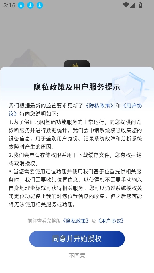 首先打开应用点击“同意并开始授权”按钮来进入中。