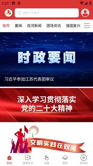 云上双河是由新疆生产建设兵团第五师融媒体中心精心打造,专门为新疆双河居民量身定制的便捷生活资讯服务平台,属于新颖的融媒体综合服务类手机应用。它会实时更新政务新闻,方便居民及时掌握最新资讯;还能让大家快速了解当下热门的网络动态,平台上也有丰富的精彩直播和动态视频内容。 同时,云上双河是党的重要宣传阵地,也是五师权威信息发布、政务服务的重要入口。它不仅搭建起群众与政府沟通的桥梁,让民众能更贴近政府,还能帮助大家随时了解各类政务信息、阅读最新新闻。此外,该平台与兵团14个师市融媒体中心实现了互联互通,是五师党委新闻舆论工作的重要阵地,也是五师党委和政府的重要执政资源,更是引导群众、服务群众的关键平台。有相关需求的用户可以下载体验。
