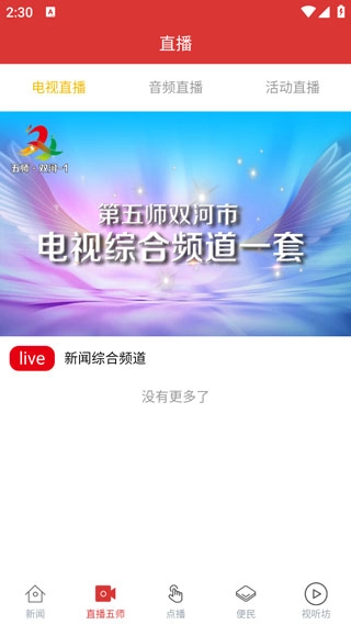 点击切换至直播工作界面,即可实时观看活动直播,此外还提供电视直播与音频直播内容。