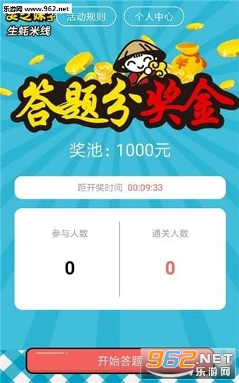 ,每题答题时长10秒,累计答对10道题目即可通关,所有成功通关的参与者将共同瓜分1000元奖金。