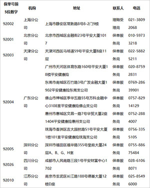 您可依据保单号前5位数字,从下方列表中确认对应的保单承保机构,然后将理赔申请资料邮寄至该机构(邮费需由您自行承担)。若过程中遇到疑问,欢迎拨打95511并转接至7号键进行咨询。