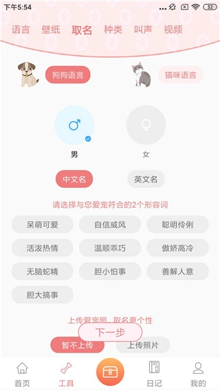 3、点击“取名”,你能够挑选宠物的属性,并为你的宠物取一个悦耳的名字。