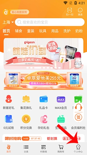 爱婴室可实时在线查看消息提醒内容,解锁更多通知以便及时处理。