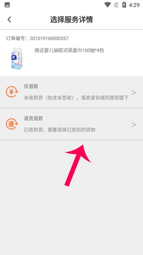 选择你要退货的理由,并点击提交即可。