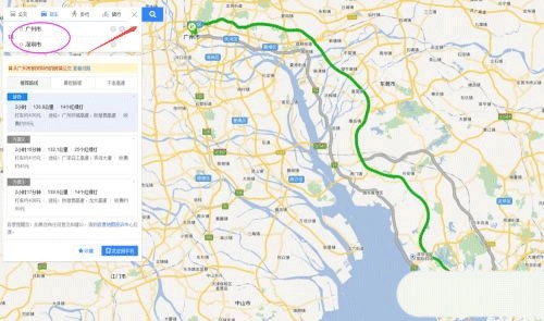 再在下方输入出发地点和到达地点,就能查询两点之间的距离、费用以及所需时间。