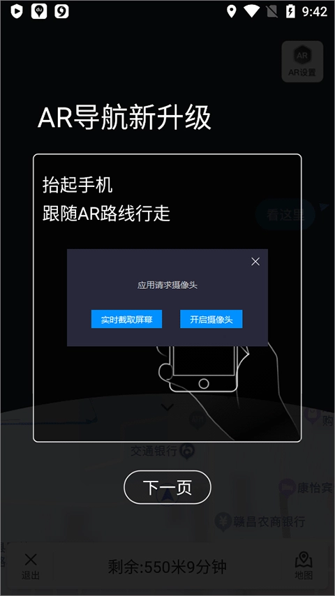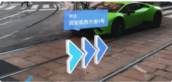 AR导航启动后,您可以依照实景里的路线指引行进。要是AR导航开启后,您的手机里没有显示路线,可跟着路线指引的指示标识,找到对应的路线。