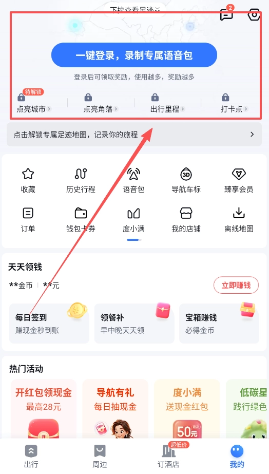 记得先完成一键登录并录制语音包,这是领取各类奖励以及参与“天天领钱”签到活动的前提,使用得越频繁,能获得的回报也会更多。