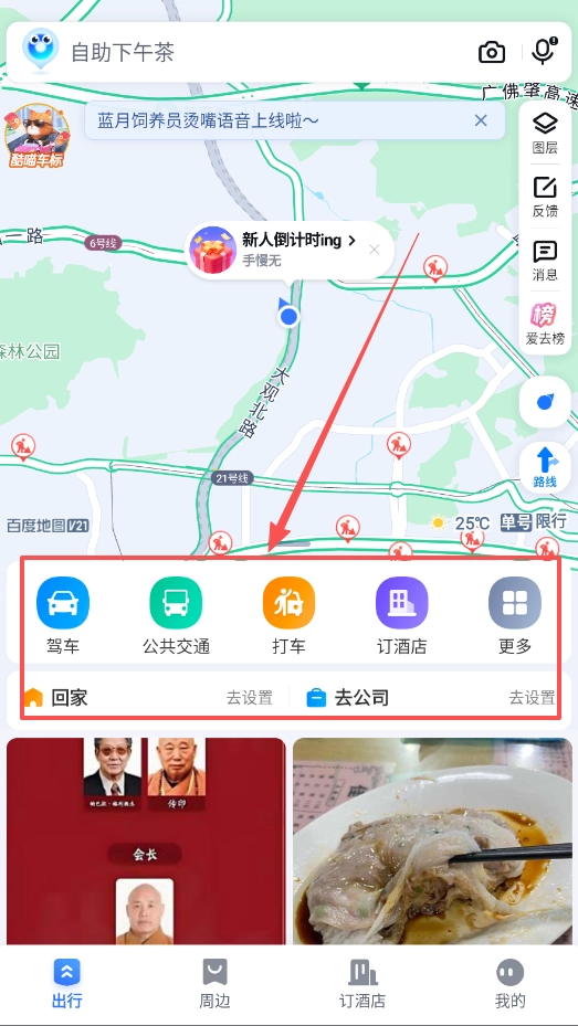 在主界面,你既可以设置快捷地址,也能查看“爱去榜”之类的推荐榜单,从中发现“自助下午茶”这类周边特色活动以及商家推出的优惠。