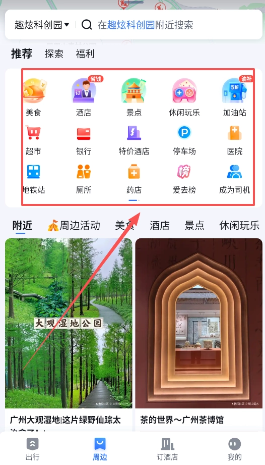 在地点详情页面中,分类服务里的“特价酒店”与“福利”板块常常会有惊喜折扣,能够满足你出行过程中的各类需求。