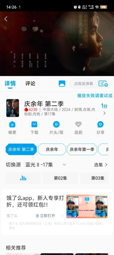 可以把喜欢的影视作品提前下载到本地设备里,这样外出游玩的时候也能随时打开应用播放。