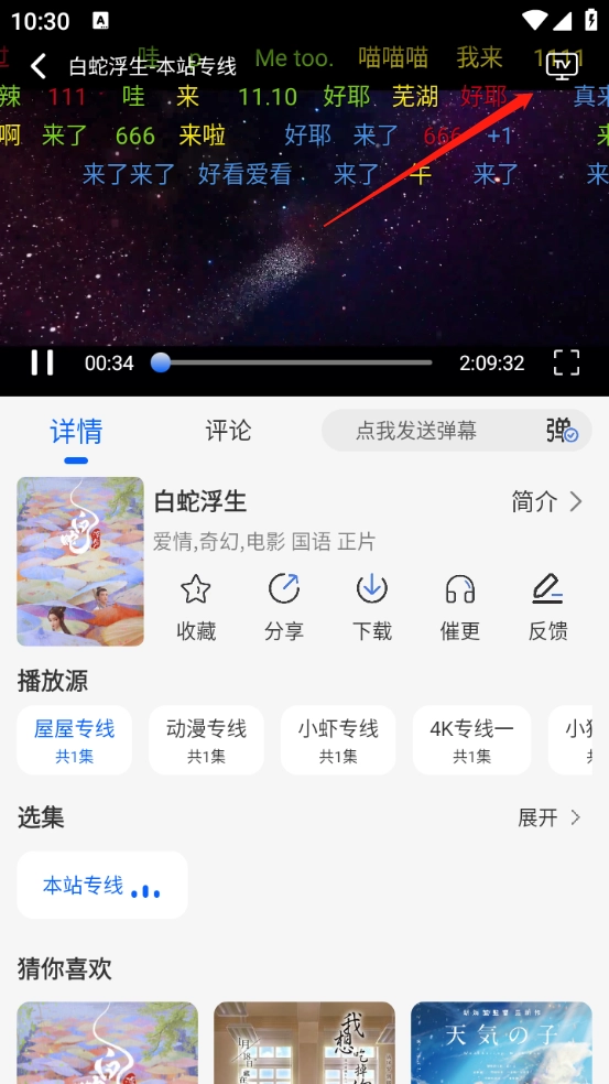 3.在播放界面点击右上角“TV”按钮;