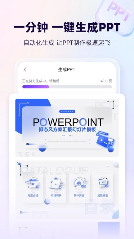 能够把手机里各种格式的文件上传至应用程序,快速生成PPT供用户使用。