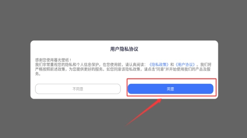在隐私界面,点击被红框标出的蓝色同意按钮。
