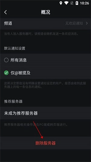 直接把虾滑拖到页面底部,然后选择“删除服务器”选项就行啦。
