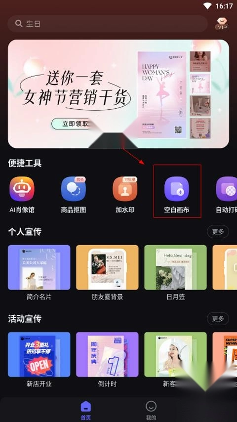 打开美图设计室,点击空白画布的选项。