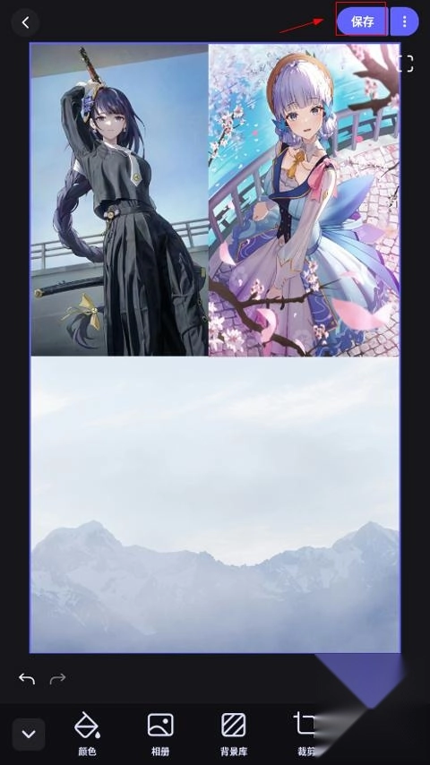 这款应用具备图片尺寸调整功能,用户能够添加多张图片来完成拼图创作,拼图制作完成后,点击界面右上角的“保存”按钮即可。