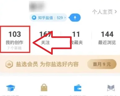 1首先,开启知乎客户端,接着进入个人的主页,然后在该页面里点击“我的创作”选项。