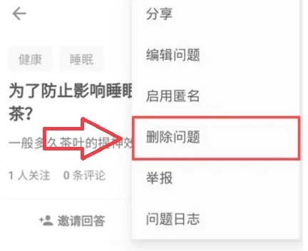 4. 轻点页面上方的分享按钮,接着在菜单栏里点击删除问题,就能完成相应操作。