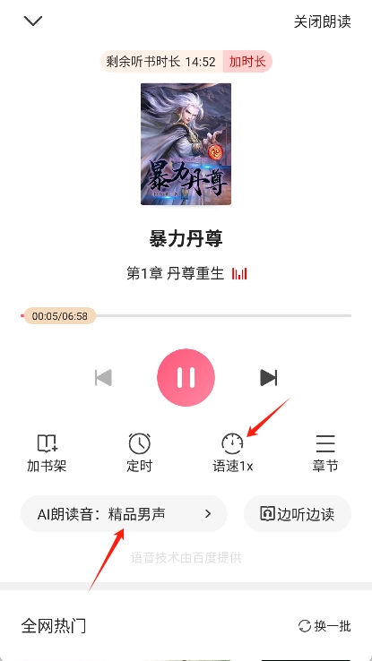 调整设置:在听书模式下能够对朗读速度、语音音调等相关设置进行调整。