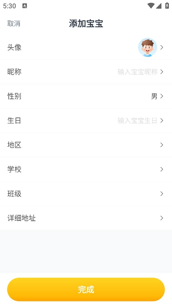 点击即可进入添加宝宝信息的页面,按要求填写宝宝的一些基本信息就可以了。