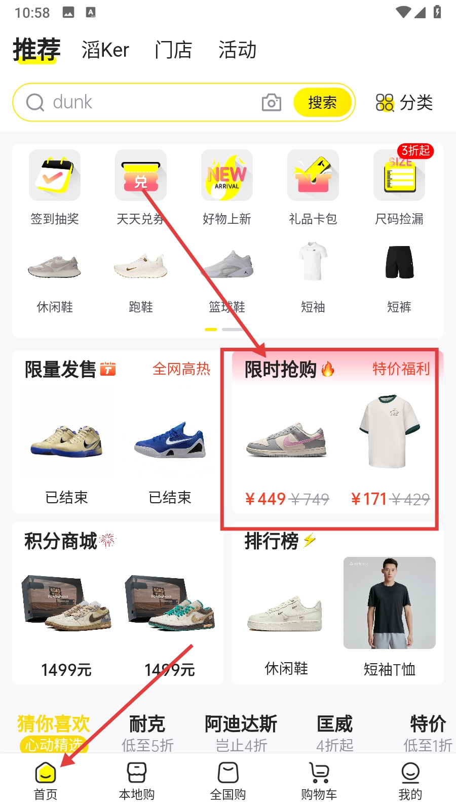 在【限时抢购】专区挑选商品时,能看到不少鞋子都已标注折扣价,找到心仪的款式后点击即可参与抢购。